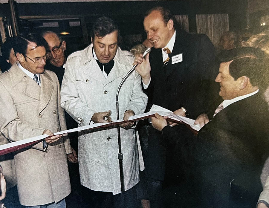 Stan Mamak (pictured centre right) at the official ribbon-cutting ceremony for the opening of Copernicus Lodge in 1979